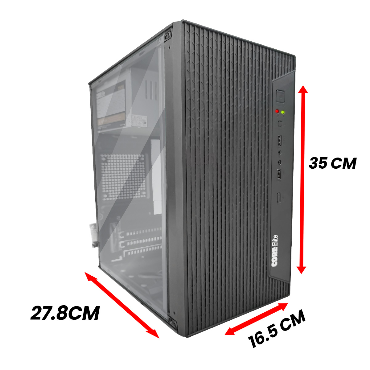 Core Elite M25512 Mini Tower is a compact and stylish PC case designed for efficiency and durability. Featuring a sleek front panel with optimized airflow and a clear acrylic side panel, it lets you showcase your components while maintaining a lightweight design. Compatible with Micro-ATX, and Mini-ITX motherboards, it offers support for multiple storage drives, efficient cooling options, and a bottom-mounted PSU. Perfect for budget-friendly and space-saving builds, delivers both functionality and modern aesthetics.